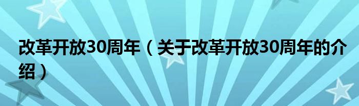 大家好,小都来为大家解答以上的问题。改革开放30周年,关于改革开放30周年的介绍很多人还不知道,现在让我们一起来看看吧!
