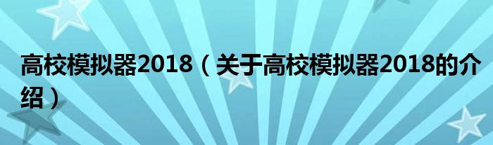 大家好,小都来为大家解答以上的问题。高校模拟器2018,关于高校模拟器2018的介绍很多人还不知道,现在让我们一起来看看吧!