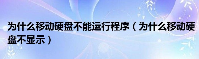 为什么移动硬盘不能运行程序,为什么移动硬盘不显示这个很多人还不知道,小飞来为大家解答以上的问题。现在让我们一起来看看吧!