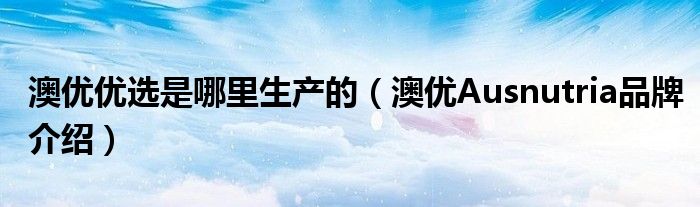 大家好,小源来为大家解答以上问题。澳优优选是哪里生产的,澳优Ausnutria品牌介绍很多人还不知道,现在让我们一起来看看吧!