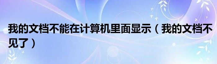 大家好,小飞来为大家解答以上问题,我的文档不能在计算机里面显示,我的文档不见了很多人还不知道,现在让我们一起来看看吧!