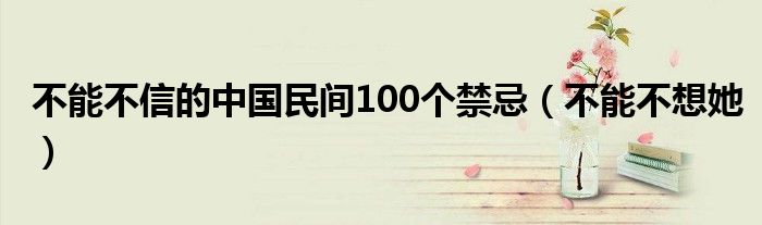 大家好,小飞来为大家解答以上的问题。不能不信的中国民间100个禁忌,不能不想她这个很多人还不知道,现在让我们一起来看看吧!