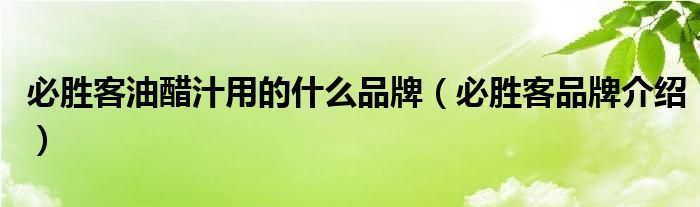 大家好,小源来为大家解答以上问题。必胜客油醋汁用的什么品牌,必胜客品牌介绍很多人还不知道,现在让我们一起来看看吧!