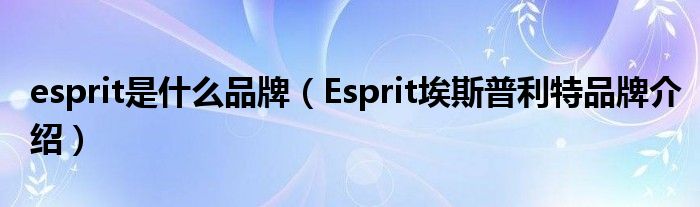 大家好,小源来为大家解答以上问题。esprit是什么品牌,Esprit埃斯普利特品牌介绍很多人还不知道,现在让我们一起来看看吧!