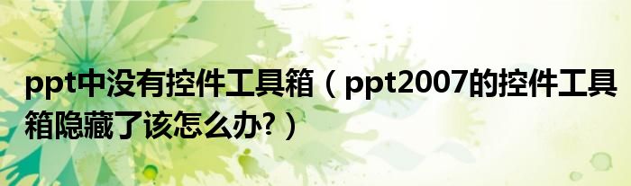 ppt中没有控件工具箱(ppt2007的控件工具箱隐藏了该怎么办?)