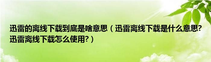 大家好,今天小悦来为大家解答以上问题。迅雷的离线下载到底是啥意思,迅雷离线下载是什么意思?迅雷离线下载怎么使用?很多人还不知道,现在让我们一起来看看吧!