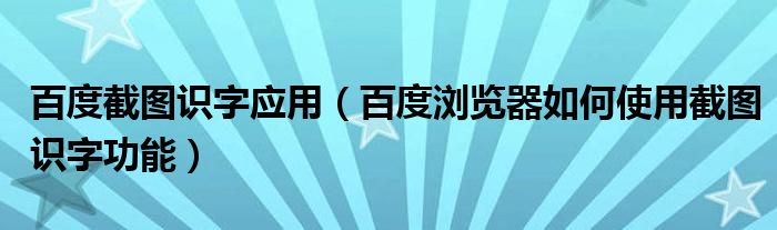 大家好,今天小悦来为大家解答以上问题。百度截图识字应用,百度浏览器如何使用截图识字功能很多人还不知道,现在让我们一起来看看吧!