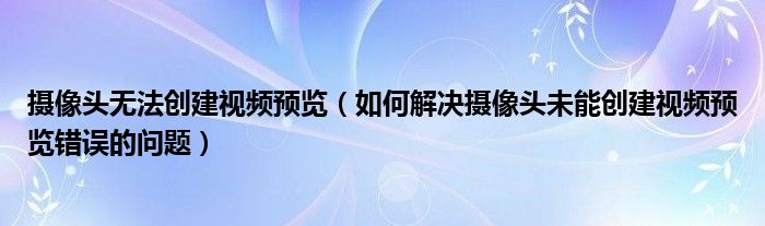 大家好,今天小悦来为大家解答以上问题。摄像头无法创建视频预览,如何解决摄像头未能创建视频预览错误的问题很多人还不知道,现在让我们一起来看看吧!