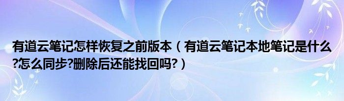 大家好,今天小悦来为大家解答以上问题。有道云笔记怎样恢复之前版本,有道云笔记本地笔记是什么?怎么同步?删除后还能找回吗?很多人还不知道,现在让我们一起来看看吧!