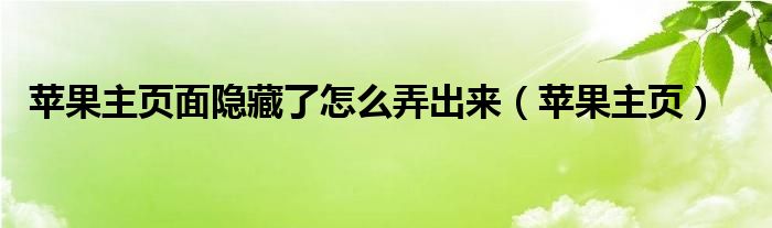 大家好,雨雨来为大家解答以上问题,苹果主页面隐藏了怎么弄出来,苹果主页很多人还不知道,现在让我们一起来看看吧!