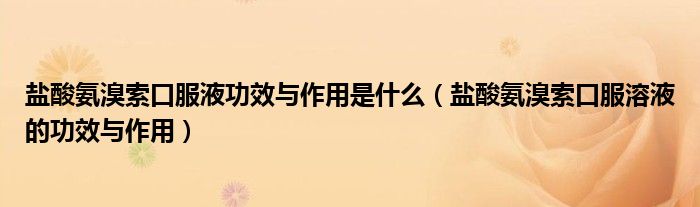 大家好,linda来为大家解答以上的问题。盐酸氨溴索口服液功效与作用是什么,盐酸氨溴索口服溶液的功效与作用很多人还不知道,现在让我们一起来看看吧!
