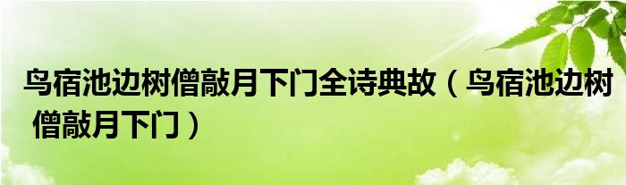 大家好,雨雨来为大家解答以上问题,鸟宿池边树僧敲月下门全诗典故,鸟宿池边树 僧敲月下门很多人还不知道,现在让我们一起来看看吧!