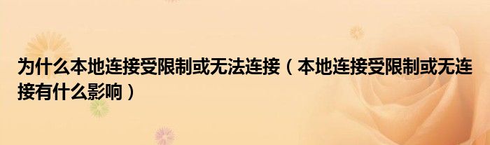 大家好,雨雨来为大家解答以上问题,为什么本地连接受限制或无法连接,本地连接受限制或无连接有什么影响很多人还不知道,现在让我们一起来看看吧!