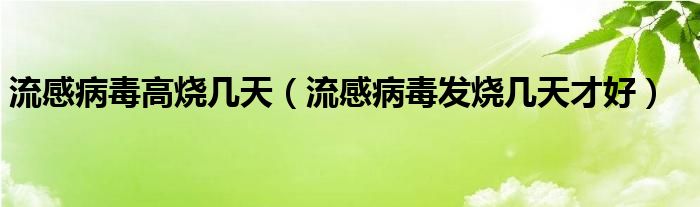 大家好,linda来为大家解答以上的问题。流感病毒高烧几天,流感病毒发烧几天才好很多人还不知道,现在让我们一起来看看吧!