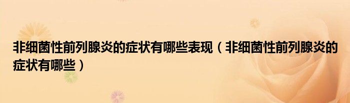 大家好,linda来为大家解答以上的问题。非细菌性前列腺炎的症状有哪些表现,非细菌性前列腺炎的症状有哪些很多人还不知道,现在让我们一起来看看吧!