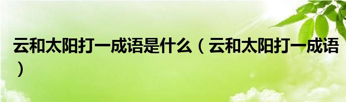 大家好,小晋来为大家解答以下问题,关于云和太阳打一成语是什么,云和太阳打一成语很多人还不知道,今天让我们一起来看看吧!