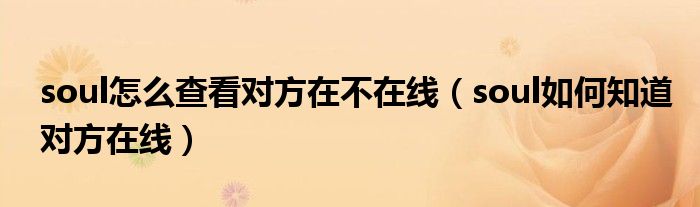 大家好,小晋来为大家解答以下问题,关于soul怎么查看对方在不在线,soul如何知道对方在线很多人还不知道,今天让我们一起来看看吧!