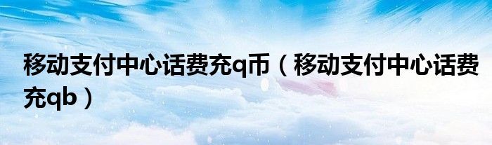 大家好,小晋来为大家解答以下问题,关于移动支付中心话费充q币,移动支付中心话费充qb很多人还不知道,今天让我们一起来看看吧!