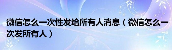 大家好,小晋来为大家解答以下问题,关于微信怎么一次性发给所有人消息,微信怎么一次发所有人很多人还不知道,今天让我们一起来看看吧!