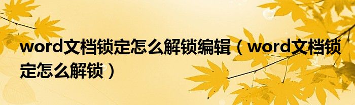 大家好,小晋来为大家解答以下问题,关于word文档锁定怎么解锁编辑,word文档锁定怎么解锁很多人还不知道,今天让我们一起来看看吧!