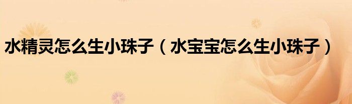 大家好,小晋来为大家解答以下问题,关于水精灵怎么生小珠子,水宝宝怎么生小珠子很多人还不知道,今天让我们一起来看看吧!