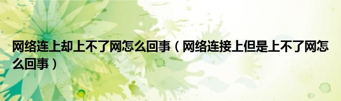 网络连上却上不了网怎么回事(网络连接上但是上不了网怎么回事)