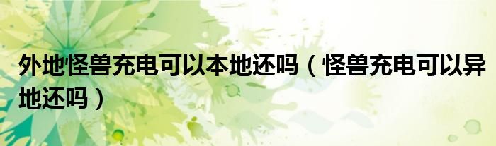大家好,小晋来为大家解答以下问题,关于外地怪兽充电可以本地还吗,怪兽充电可以异地还吗很多人还不知道,今天让我们一起来看看吧!