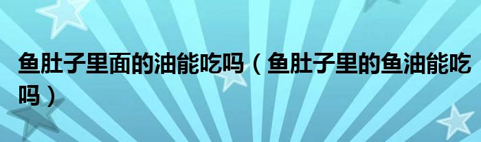 大家好,小晋来为大家解答以下问题,关于鱼肚子里面的油能吃吗,鱼肚子里的鱼油能吃吗很多人还不知道,今天让我们一起来看看吧!