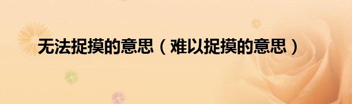 大家好,小晋来为大家解答以下问题,关于无法捉摸的意思,难以捉摸的意思很多人还不知道,今天让我们一起来看看吧!