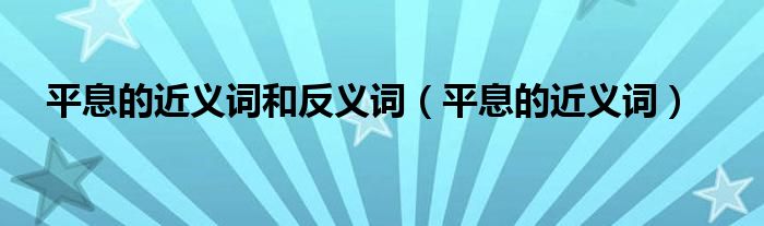 大家好,小晋来为大家解答以下问题,关于平息的近义词和反义词,平息的近义词很多人还不知道,今天让我们一起来看看吧!