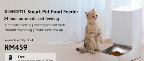 小米智能宠物喂食器和小米智能宠物喷泉将于2022年9月1日起在所有小米门店发售。从推出之日起至2022年9月4日,每购买智能宠物喂食器,您可以免费获得价值RM149的小米家庭安全摄像头360°,或从智能宠物喷泉中获得RM40的优惠。