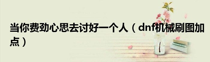当你费劲心思去讨好一个人,dnf机械刷图加点很多人还不知道,乐乐来为大家解答以上问题,现在让我们一起来看看吧!