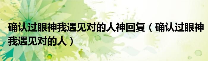 确认过眼神我遇见对的人神回复,确认过眼神我遇见对的人很多人还不知道,乐乐来为大家解答以上问题,现在让我们一起来看看吧!