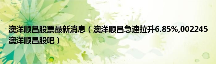 大家好,小常来为大家解答以上问题。澳洋顺昌股票最新消息,澳洋顺昌急速拉升6.85%,002245澳洋顺昌股吧很多人还不知道,现在让我们一起来看看吧!
