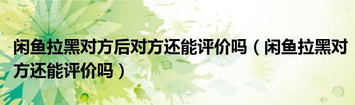大家好,跳跳为你解答以上问题。闲鱼拉黑对方后对方还能评价吗,闲鱼拉黑对方还能评价吗这个问题很多人还不知道,现在让我们一起来看看吧!