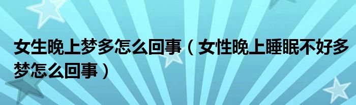 大家好,linda来为大家解答以上的问题。女生晚上梦多怎么回事,女性晚上睡眠不好多梦怎么回事很多人还不知道,现在让我们一起来看看吧!