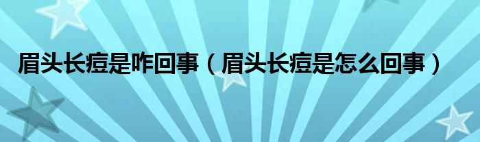 大家好,linda来为大家解答以上的问题。眉头长痘是咋回事,眉头长痘是怎么回事很多人还不知道,现在让我们一起来看看吧!