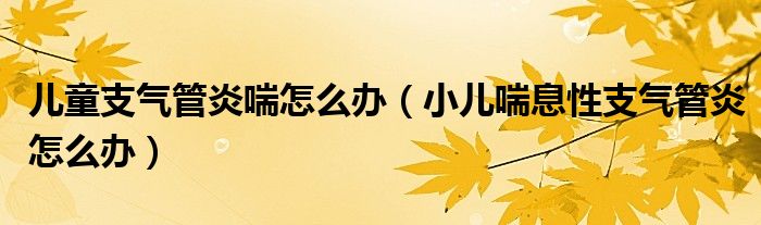 儿童支气管炎喘怎么办(小儿喘息性支气管炎怎么办)
