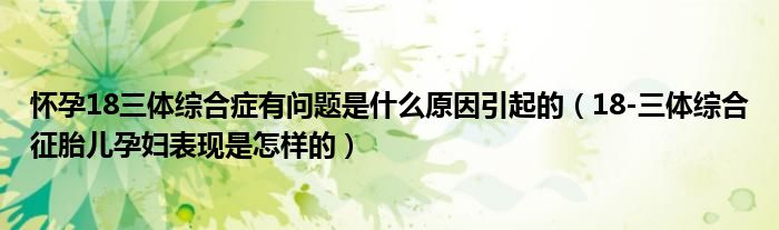 大家好,linda来为大家解答以上的问题。怀孕18三体综合症有问题是什么原因引起的,18-三体综合征胎儿孕妇表现是怎样的很多人还不知道,现在让我们一起来看看吧!