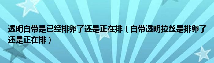大家好,linda来为大家解答以上的问题。透明白带是已经排卵了还是正在排,白带透明拉丝是排卵了还是正在排很多人还不知道,现在让我们一起来看看吧!