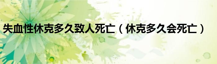 大家好,linda来为大家解答以上的问题。失血性休克多久致人死亡,休克多久会死亡很多人还不知道,现在让我们一起来看看吧!