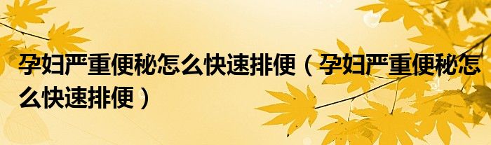 1、孕妇有严重的便秘问题,想快速排出粪便。建议用开塞露或者灌肠,两种都比较快。可用生理盐水、肥皂水或高渗盐作为灌肠剂排出粪便。孕妇涂凯色露更好更方便。