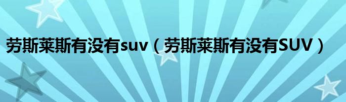 劳斯莱斯有没有suv(劳斯莱斯有没有SUV)