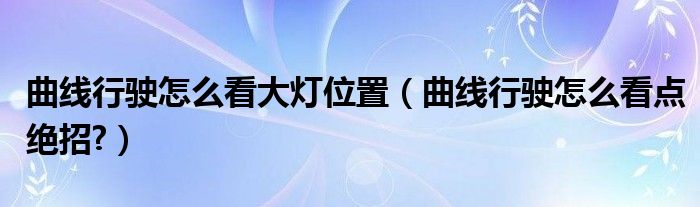 大家好,小美来为大家解答以上问题。曲线行驶怎么看大灯位置,曲线行驶怎么看点绝招?很多人还不知道,现在让我们一起来看看吧!