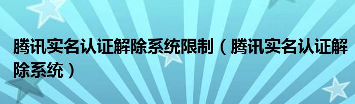 大家好,小晋来为大家解答以下问题,关于腾讯实名认证解除系统限制,腾讯实名认证解除系统很多人还不知道,今天让我们一起来看看吧!