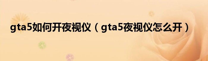 gta5如何开夜视仪(gta5夜视仪怎么开)
