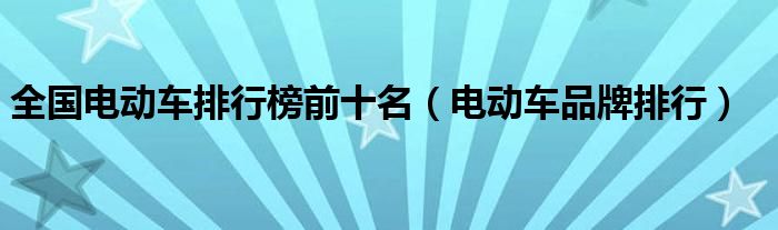 关于全国电动车排行榜前十名,电动车品牌排行这个很多人还不知道,今天菲菲来为大家解答以上的问题,现在让我们一起来看看吧!