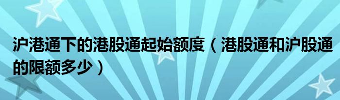 关于沪港通下的港股通起始额度,港股通和沪股通的限额多少这个很多人还不知道,今天菲菲来为大家解答以上的问题,现在让我们一起来看看吧!