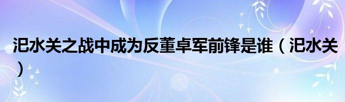 关于汜水关之战中成为反董卓军前锋是谁,汜水关这个很多人还不知道,今天菲菲来为大家解答以上的问题,现在让我们一起来看看吧!