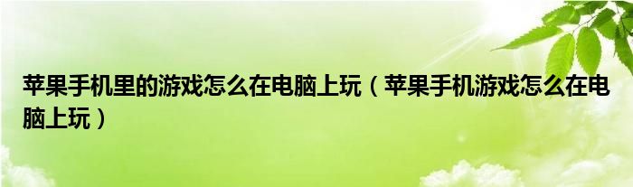 关于苹果手机里的游戏怎么在电脑上玩,苹果手机游戏怎么在电脑上玩这个很多人还不知道,今天菲菲来为大家解答以上的问题,现在让我们一起来看看吧!